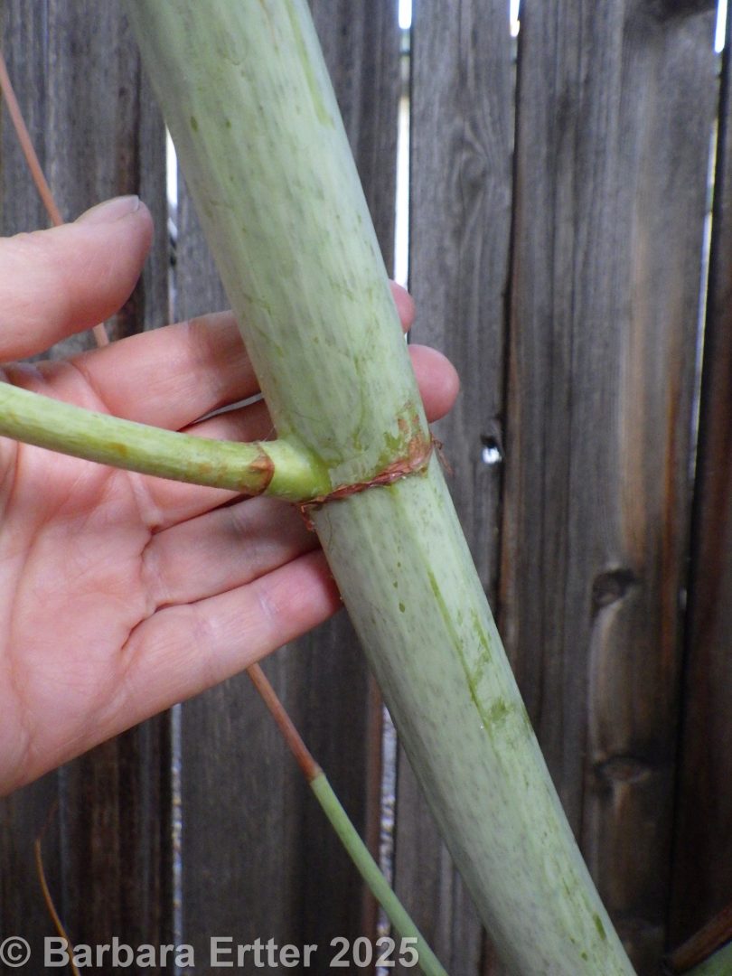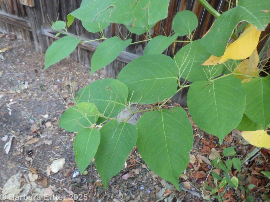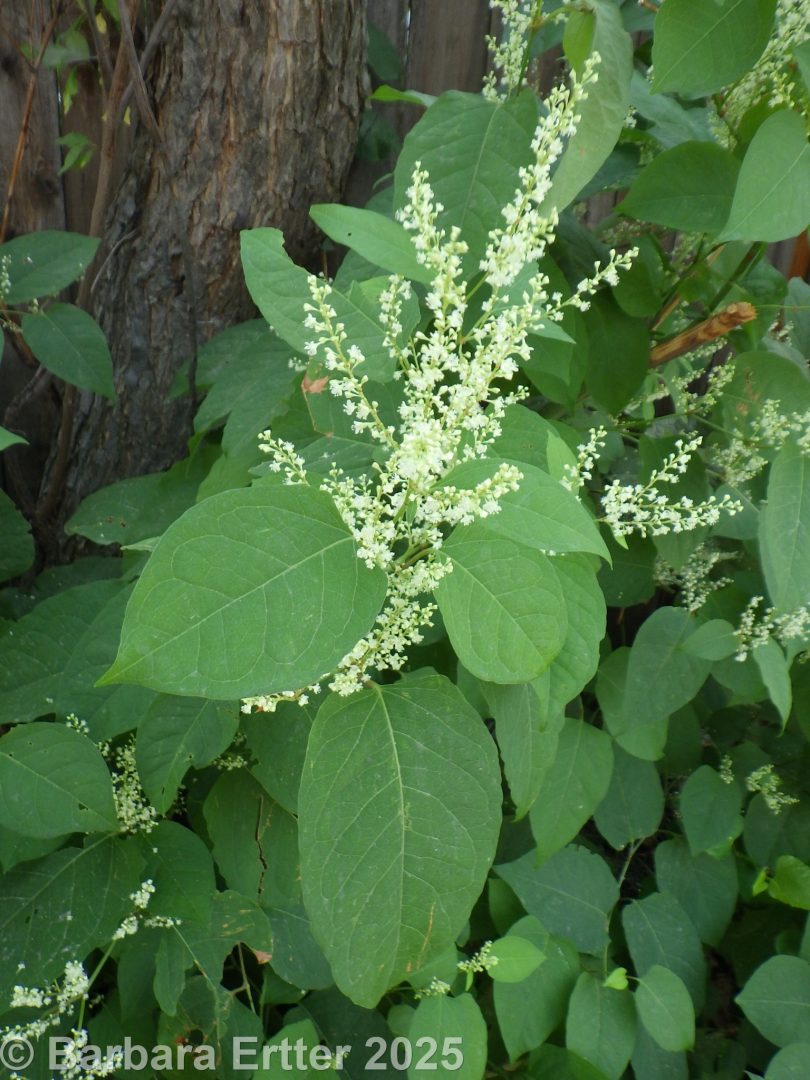The hybrid between Japanese knotweed and giant knotweed (Reynoutria sachalinensis), known as Bohemian knotweed (Reynoutria ×bohemica, with the “×” used to indicate a hybrid species) was collected in Boise in 1964 (Higgins 9-64, ID088466).  This is possibly the source of Reveal’s (2012) specifically mention of Boise as the sole location of R. ×bohemica within the bounds of the Intermountain Flora; however, no current populations have been located of either R. ×bohemica or R. sachalinensis anywhere near the Boise area